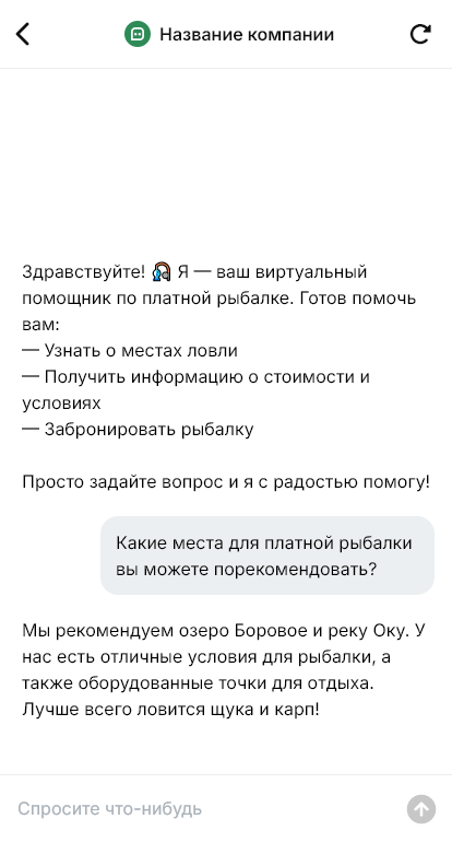 Платная рыбалка — это сервис, где важны простые вещи: свободные места, правила, стоимость, время работы, условия по снастям, нормам вылова, аренде беседок и домиков, прикормке, мангалам и инфраструктуре. Посетители часто планируют поездку в последний момент и пишут в мессенджер: «есть ли места на завтра», «сколько стоит», «какая рыба клюёт», «можно ли с детьми», «что по парковке». Если администратор не успевает отвечать, часть людей едет на другой водоём.