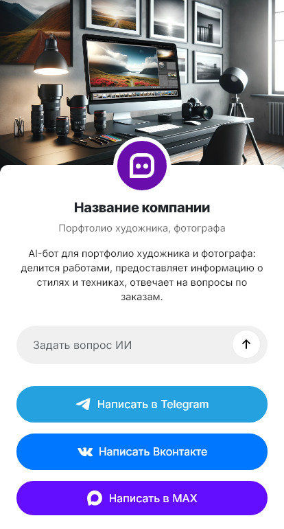 Решение работает в Telegram, VK, MAX и на сайте и настраивается под ваш стиль, прайс и процессы. В результате меньше переписок «впустую» и больше подтверждённых заказов.