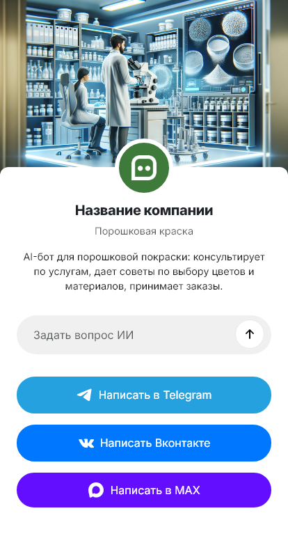 В итоге порошковая окраска становится понятной услугой с прозрачным расчётом. Бот работает в Telegram, VK, MAX и на сайте, ускоряет сбор вводных, снижает ошибки, помогает планировать производство и доводит клиента от запроса до готового изделия с качественным покрытием.