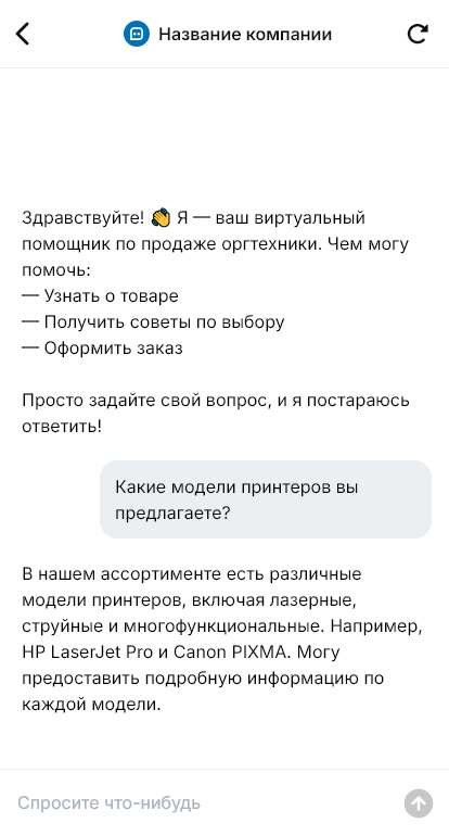 Оргтехнику выбирают быстрее, когда бот уточняет задачи офиса и подбирает модель без лишних характеристик