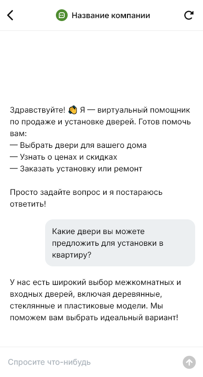 Продажа и установка дверей — это услуга, где критичны точные размеры и дисциплина по срокам. Клиенты хотят понять итоговую стоимость, что входит в монтаж, когда можно сделать замер, сколько дней ждать изготовление и как проходит установка. Если менеджеры собирают вводные вручную, часть заявок теряется, замеры назначаются с задержкой, а ошибки в комплектации приводят к повторным выездам.