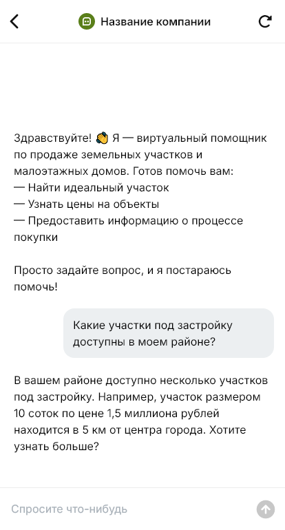 Участки и малоэтажные дома продаются лучше, когда бот уточняет бюджет и параметры до показа