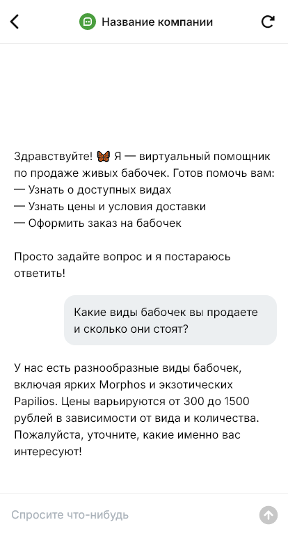 Живые бабочки — эмоциональный продукт, который часто покупают под событие: подарок, фотосессия, праздник, выпуск. Клиенты пишут с вопросами: какие виды доступны, сколько живут, как ухаживать, как доставляют, можно ли на конкретную дату и время. Если ответ задерживается, заказ срывается. Бот для продажи живых бабочек помогает быстро консультировать и принимать заявки.