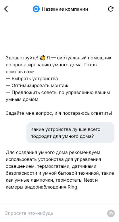 Для клиента важно понимать, что умный дом — это не «одна коробка», а проект с этапами и ограничениями. Бот может объяснять простым языком, как строится система: проектирование, оборудование, монтаж, настройка, поддержка. Он помогает выбрать подход: начать с базовых сценариев и расширяться или сделать комплекс сразу. Такой диалог снижает страх и повышает доверие.
