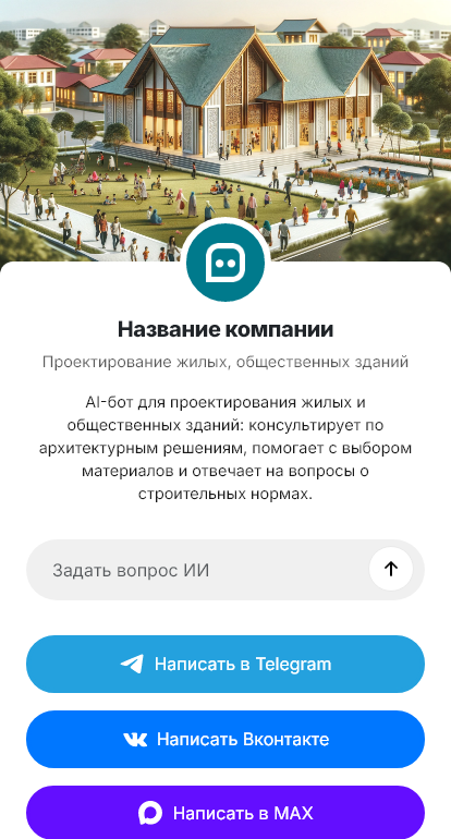 Бот работает в Telegram, ВК, MAX и на сайте 24/7, повышает скорость реакции и помогает превращать сложные запросы в оформленные проекты и договоры.