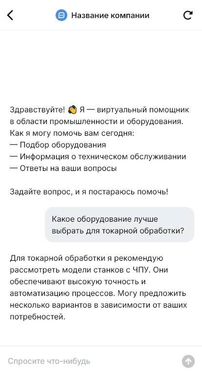 Промышленное оборудование продаётся быстрее когда бот собирает требования и проверяет совместимость с производством