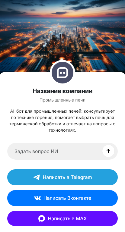 В сопровождении бот поддерживает проект и сервис. Он уведомляет о стадиях, изготовление, поставка, монтаж, испытания, обучение. Он хранит паспорта и инструкции, помогает оформлять заявки на обслуживание, собирая симптомы, показатели датчиков, фото узлов и серийные номера. Он может напоминать о профилактике, проверке огнеупоров, калибровке термопар и обслуживании горелок. В итоге печи работают стабильнее и дают предсказуемое качество благодаря боту, который фиксирует параметры и держит обслуживание под контролем.