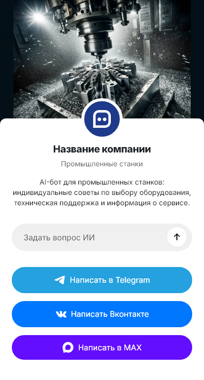 Бот для промышленных станков помогает собрать параметры для инженерного подбора. Он уточняет тип станка и операции, материал и размеры деталей, желаемую точность, объёмы производства, наличие ЧПУ и автоматизации, требования к электропитанию и месту установки, бюджет, сроки и регион. Бот фиксирует контакты и может предложить следующий шаг: консультация инженера, подбор модели, КП.