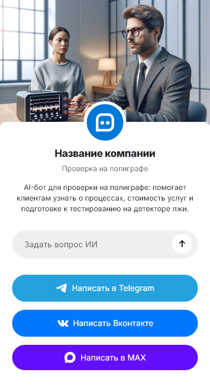 Бот помогает спокойно объяснить порядок и оформить запись. Он уточняет цель проверки, количество участников, город, желаемую дату, формат, офис или выезд, и фиксирует контакт. Бот рассказывает общие правила подготовки, например режим сна и отсутствие алкоголя, напоминает о необходимости документов и информированного согласия. Он формирует заявку, отправляет подтверждение и чек лист, чтобы участники пришли подготовленными и процедура прошла корректно.
