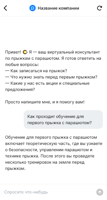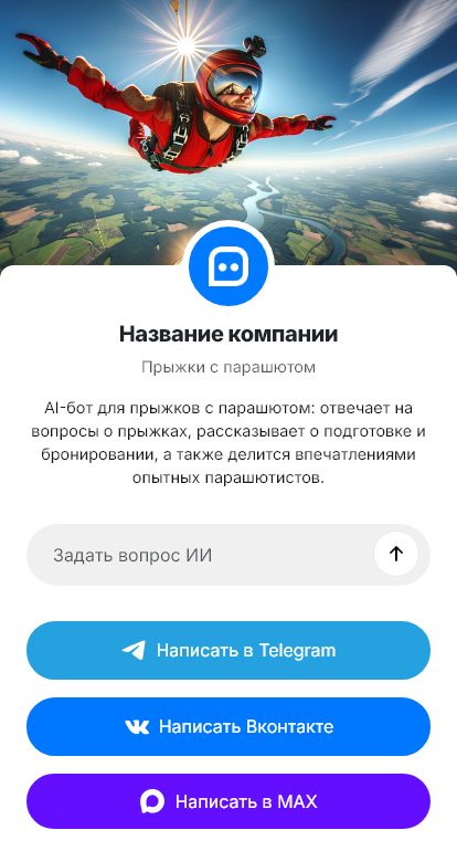 Прыжки с парашютом — услуга, где у клиента много вопросов и сомнений: с какого возраста можно, нужен ли медосмотр, что по весу, какая программа для новичка, как проходит инструктаж, сколько времени занимает, что по погоде, как добраться и что будет на месте. Человек может быть готов купить, но если ему не ответили быстро и уверенно, он откладывает решение или выбирает другую площадку.