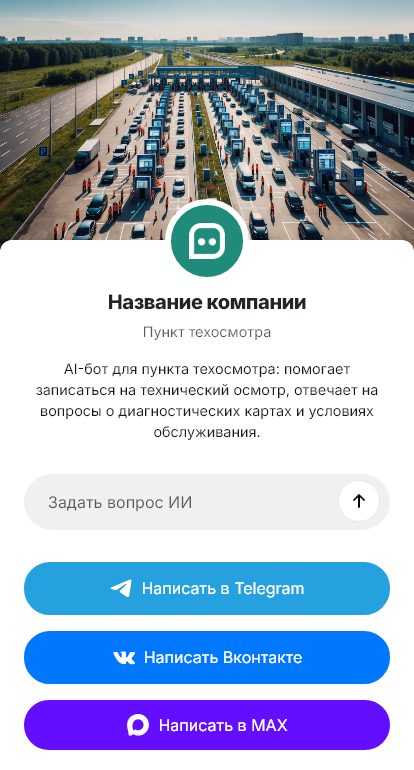 Для пункта бот снижает нагрузку на администратора и уменьшает очереди. Он может напоминать о записи, помогать переносить время, объяснять правила оплаты и выдачи документов. Если пункт работает с корпоративными клиентами, бот может принимать заявки на техосмотр автопарка, собирая количество машин, категории и желаемые окна, чтобы менеджеру было проще сформировать предложение.