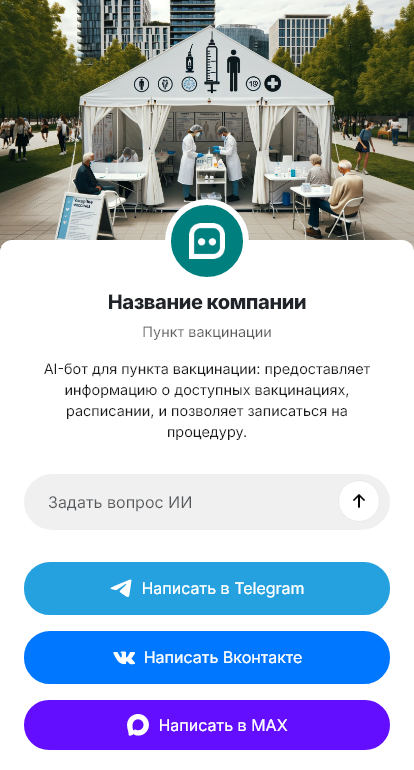 В итоге пункт вакцинации обслуживает больше людей без хаоса и снижает число пропусков. Бот работает в Telegram, VK, MAX и на сайте, превращая вопросы о времени в подтверждённые визиты.