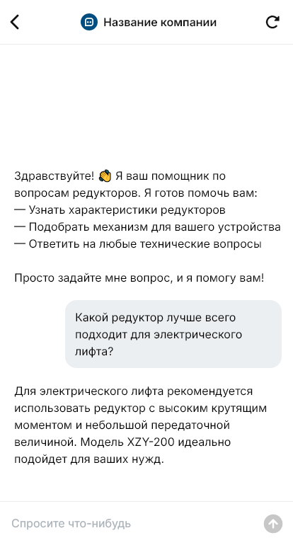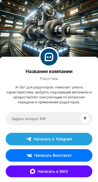 В итоге редукторы подбираются точнее, уменьшается риск простоев и лишних затрат, а предприятие получает быстрый и прозрачный процесс от запроса до поставки благодаря боту.