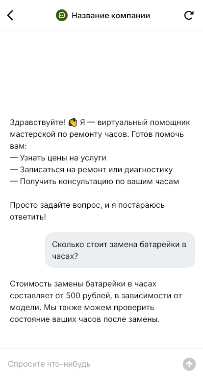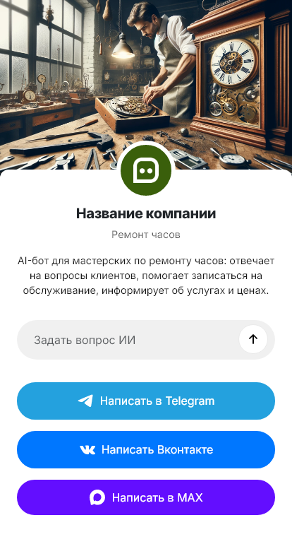 Для мастерской бот удобен и в сопровождении. Он сообщает статус, фиксирует согласование работ и стоимости, уведомляет о готовности. Для ремешков и браслетов бот может помочь выбрать вариант по размеру и стилю, чтобы мастер заранее подготовил материалы. Постоянным клиентам бот может напоминать о плановом обслуживании и проверке герметичности, что повышает доверие и удержание.