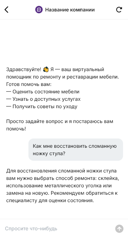 Ремонт и реставрация мебели — услуга, где клиенту важно быстро понять три вещи: можно ли восстановить, сколько это будет стоить и сколько займёт времени. Люди пишут с фотографиями: сколы, царапины, расшатанные соединения, провалившиеся сиденья, повреждённая обивка, сломанные механизмы. Но если мастер занят работой, он не может отвечать мгновенно, и часть обращений теряется. При этом клиенту нужна уверенность, что его запрос не исчезнет.