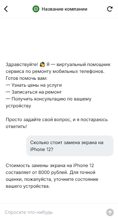 Внедрение настраивается под прайс по моделям, наличие запчастей, расписание мастеров и CRM. Итог — больше заявок и меньше пустых консультаций, потому что клиент сразу получает конкретику, а сервис готовится к ремонту заранее.