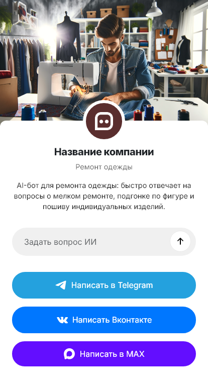 Ремонт одежды и ателье обычно обслуживают много мелких заказов, где каждая переписка отнимает время. Подшив, замена молнии, ушив, подгонка по фигуре, ремонт швов, установка фурнитуры, восстановление подкладки. Клиент хочет быстро узнать, можно ли сделать и сколько это стоит, а ателье важно собрать вводные, иначе после приезда выясняется, что нужно другое решение или дополнительные материалы.