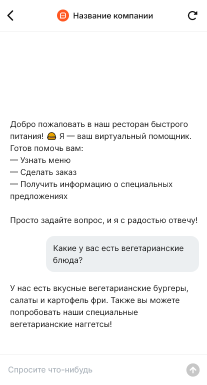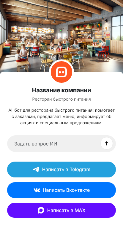 Ресторан быстрого питания получает максимальную нагрузку в обед, вечером и по выходным. Гости спрашивают о меню, комбо, составе, времени ожидания, доставке и акциях. Когда линия загружена, персонал не успевает отвечать в мессенджерах, и часть обращений не превращается в заказы. Кроме того, при ручном приёме в переписке легко ошибиться в адресе или комплектации, что снижает качество сервиса.