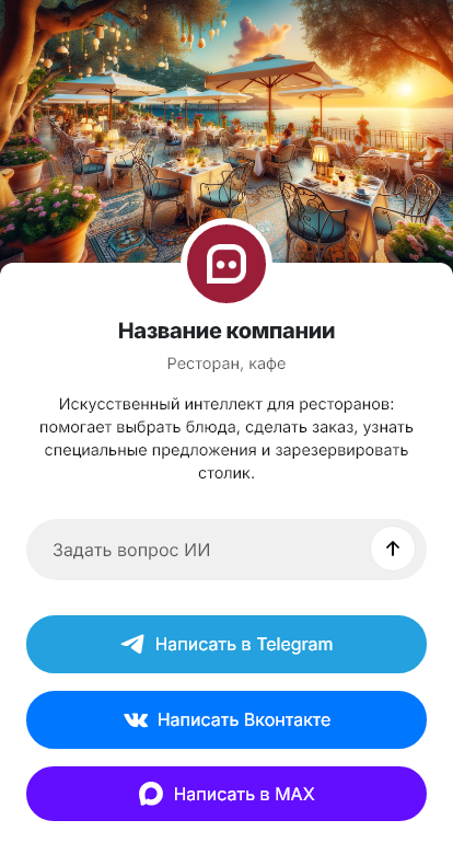 В итоге увеличивается конверсия обращений в брони и заказы. Бот работает в Telegram, VK, MAX и на сайте, обеспечивая быстрый ответ и удобный процесс общения с гостями.