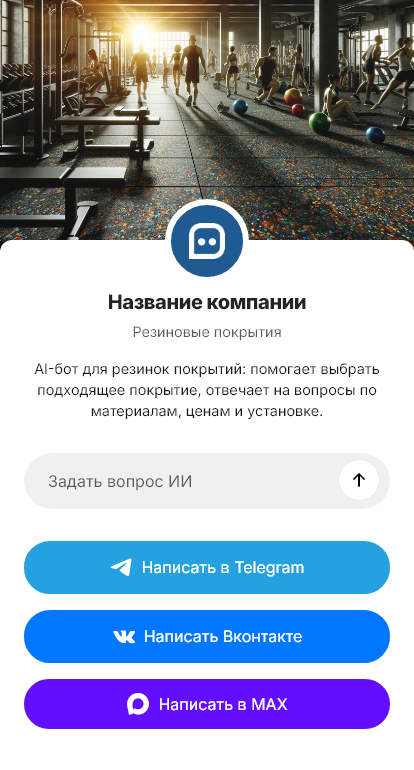 Резиновые покрытия выбирают под конкретную задачу: детские площадки, спортивные объекты, дорожки, входные группы, залы и уличные зоны. Клиенты спрашивают про толщину, цвет, основание, сроки укладки и цену за м², а также про устойчивость к погоде и нагрузкам. Если менеджер долго уточняет параметры вручную, часть заявок уходит. Бот для резиновых покрытий помогает быстро собрать исходные данные и подготовить предварительный расчёт.