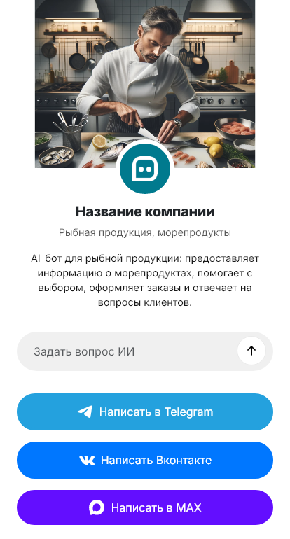 В итоге рыба и морепродукты продаются стабильнее, потому что выбор и оформление заказа становятся простыми. Бот работает в Telegram, VK, MAX и на сайте, превращая вопросы о свежести и наличии в оформленные покупки и поставки.