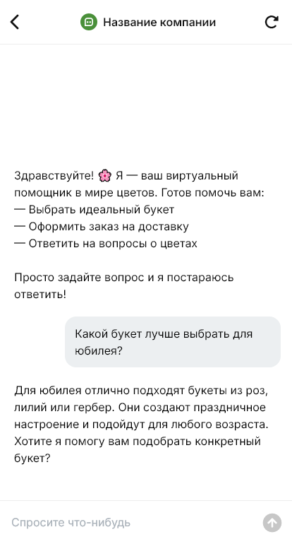 Цветочный салон с доставкой выигрывает в сервисе когда бот работает как консьерж и ведёт клиента от выбора до вручения
