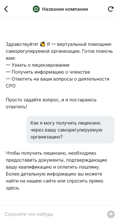 Для СРО важно также информирование. Изменения в регламентах, даты проверок, обучение, вебинары, подтверждение взносов — всё это можно доводить до участников через бота одинаково и своевременно. Это снижает число нарушений из-за неосведомлённости и уменьшает количество повторных звонков. При необходимости можно настроить сценарии для разных категорий участников и видов деятельности, чтобы информация была точной, а путь — коротким.