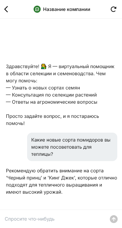 Семена продаются убедительнее когда бот помогает оформить заявку и быстро выдать агрономические данные