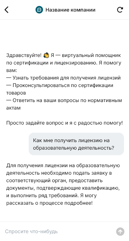 Сертификация и лицензирование идут быстрее, когда бот определяет вид деятельности и пакет документов