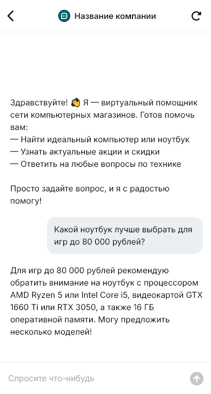 Сеть компьютерных магазинов выигрывает, когда бот ведёт клиента от задачи до покупки в любом филиале