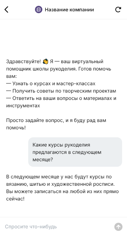 Бот для школы рукоделия помогает подобрать направление и снять барьеры. Он уточняет интересующую технику, уровень, цель (первое изделие, подарки, профессиональный рост), удобное расписание и формат занятий. Бот показывает ближайшие мастер-классы и курсы, объясняет, что входит в стоимость, нужны ли материалы, и записывает на занятие.