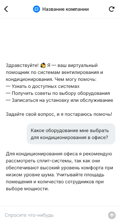 Вентиляцию и кондиционирование рассчитывают точнее, когда бот собирает помещение, нагрузки и режим использования