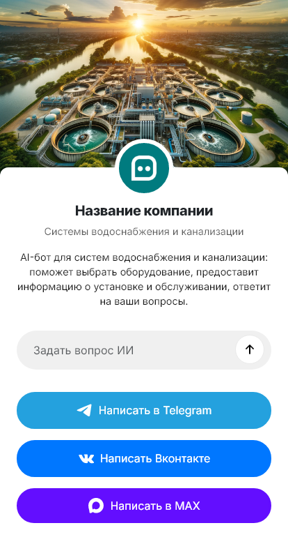 В итоге системы водоснабжения и канализации проектируются и обслуживаются эффективнее. Бот работает в Telegram, VK, MAX и на сайте, помогает не терять обращения, повышает точность расчётов и ускоряет путь от заявки до выполненных работ.