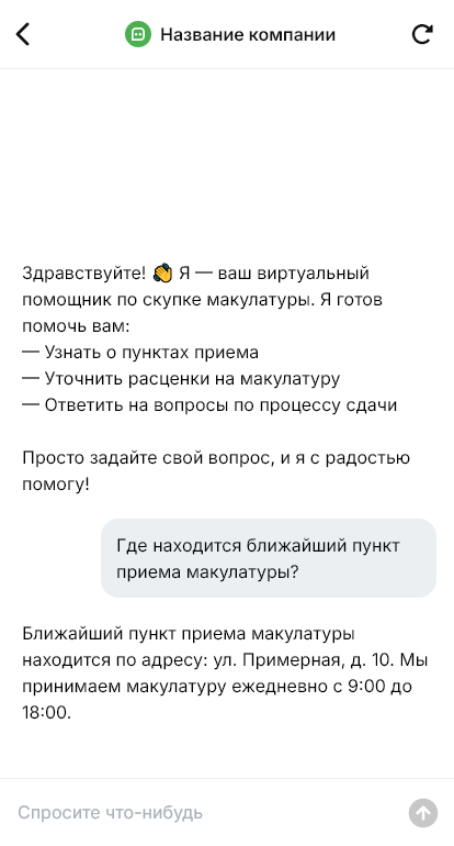 Макулатуру собирают регулярнее когда бот объясняет требования и помогает заказать вывоз