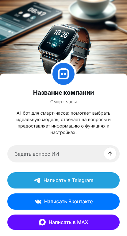 Бот для продажи смарт-часов помогает превратить выбор в понятный диалог. Он уточняет, какой телефон у пользователя, какие функции важны (спорт, здоровье, звонки, NFC, eSIM), какие тренировки, нужен ли прочный корпус, водозащита, автономность, стиль и бюджет. Затем бот предлагает несколько моделей, объясняя, почему они подходят, и помогает оформить заказ или запись на консультацию.