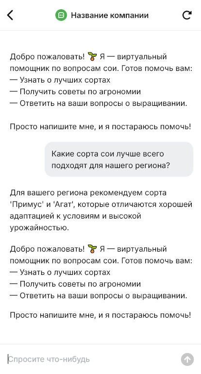 Для продавца сои бот облегчает управление сделками и логистикой. Он помогает согласовывать окна погрузки, фиксировать изменения, собирать запросы на регулярные поставки и передавать их менеджеру с графиком и требованиями. По рекламациям бот собирает данные партии и маршрута, чтобы служба качества могла быстро разобраться и сохранить отношения с клиентом.