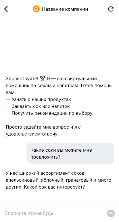 Категория соков и напитков кажется простой, но покупатели часто выбирают по множеству критериев. Сколько процентов сока, есть ли сахар, какие вкусы в наличии, какая тара удобнее, подойдёт ли продукт детям, сколько стоит доставка и какие наборы выгоднее. Когда ассортимент широкий, консультации отнимают много времени, а в переписке легко потерять детали. В итоге часть обращений не заканчивается покупкой, хотя клиент был готов заказать сразу.