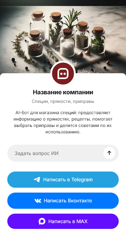 В итоге специи продаются стабильнее, потому что выбор становится понятным и удобным. Бот работает в Telegram, VK, MAX и на сайте, превращая вопросы «что взять» в оформленные покупки.