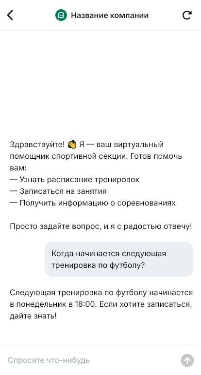 После первого контакта бот помогает поддерживать дисциплину: напоминания о тренировках, уведомления о переносах, инструкции по подготовке, ответы на вопросы о форме и инвентаре. За счёт этого снижается количество «срывов» и пропусков по причине банальной забывчивости или непонимания правил.