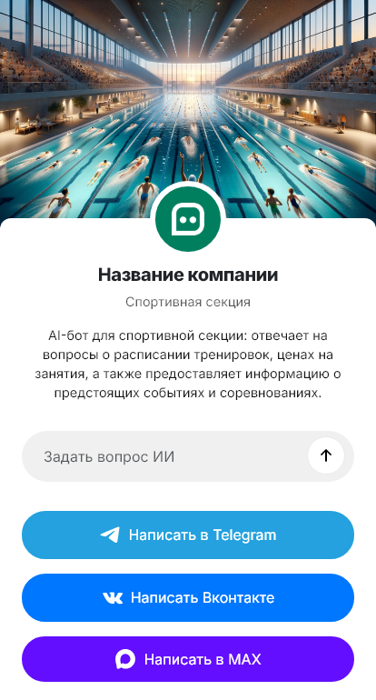 Бот помогает быстро провести человека по пути «узнать → попробовать → заниматься». Он уточняет возраст, цель (здоровье, форма, подготовка к соревнованиям), опыт, удобные дни и время, локацию и бюджет. Затем бот предлагает подходящую группу, объясняет условия и фиксирует запись на пробное занятие.