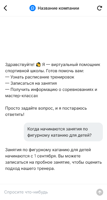 Бот помогает превратить коммуникации в понятный процесс. Он отвечает на типовые вопросы, помогает записаться в группу, уточняет возраст и уровень, фиксирует пробную тренировку и отправляет инструкции по подготовке. Далее бот напоминает о занятиях, уведомляет о переносах, объясняет правила посещения и помогает продлевать абонементы.