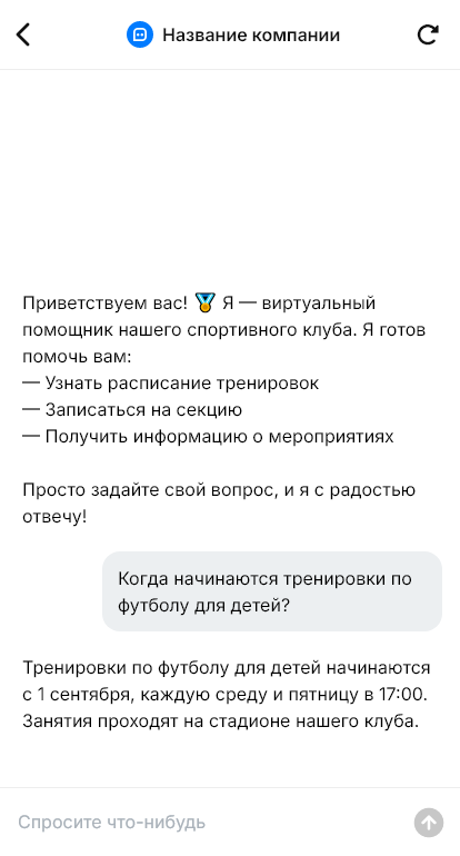 Спортивный клуб или секция живут от регулярности и набора новых учеников. Родители и взрослые спрашивают про расписание, стоимость, пробное занятие, требования, форму, группу по возрасту и уровню, тренеров и условия заморозки. Если администратор не отвечает быстро, особенно вечером, заявки теряются, потому что люди выбирают секцию там, где запись проще и понятнее.