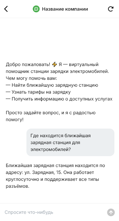 Для операторов зарядной сети бот снижает нагрузку на колл центр и помогает собирать статистику по проблемам и загруженности. Можно настроить уведомления о завершении зарядки, напоминания о парковочных правилах и сбор обратной связи. Для корпоративных клиентов бот может принимать заявки на подключение новых точек или обслуживание, собирая параметры локации и потребности.
