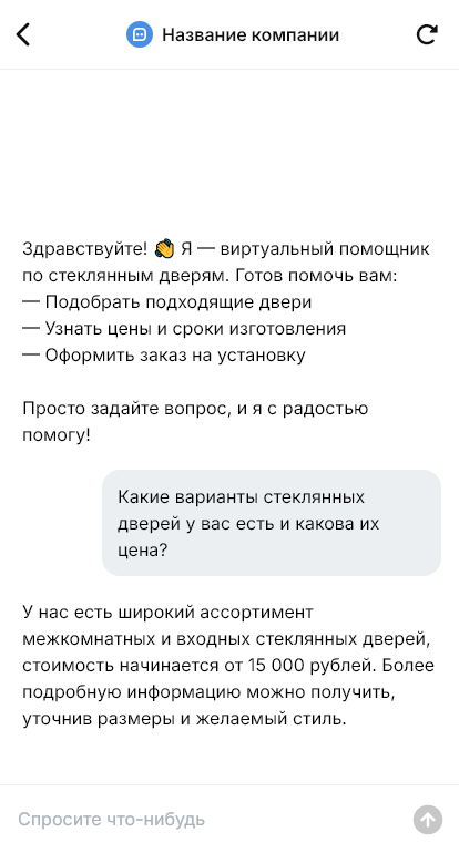 В итоге стеклянные двери заказывают быстрее и с меньшим риском ошибок, а клиент получает понятный процесс от выбора до установки и аккуратную коммуникацию в одном чате.