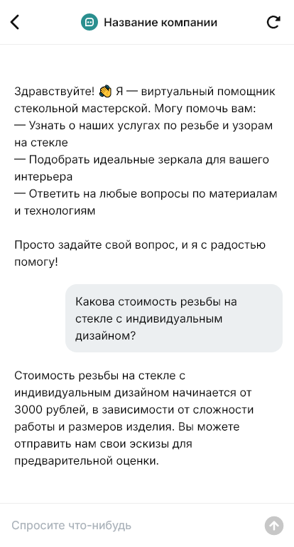 Заказы на стекло и зеркала часто начинаются с референса: клиент присылает фото, спрашивает «сможете так же» и «сколько будет стоить». Важно быстро уточнить размеры, тип стекла, кромку, обработку, отверстия, подсветку, рисунок или резьбу, а также сроки и монтаж. Если переписка затягивается, клиент уходит к мастерской, которая быстрее собрала ТЗ и дала понятный ответ. Бот для стекольных работ помогает автоматизировать первичный бриф и доводить запрос до заказа.