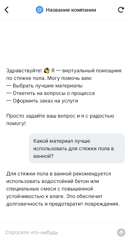 Стяжка пола — услуга, где клиенты часто спрашивают «сколько стоит за квадрат», но цена зависит от толщины, основания, перепадов, типа стяжки и условий на объекте. Заказчики пишут в мессенджеры, присылают фото и ждут быстрый ответ и ближайшие даты. Если ответа нет, они обращаются к другой бригаде. Бот для стяжки пола помогает быстро принять обращение 24/7, собрать параметры и довести до выезда и сметы.