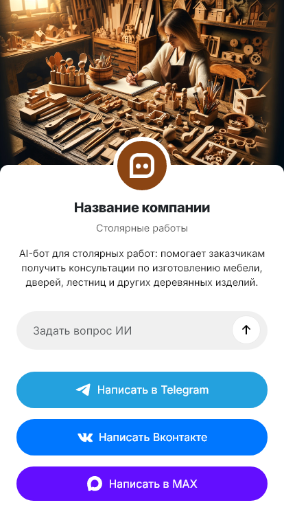 Столярные работы почти всегда начинаются с идеи и набора вопросов. Шкафы и стеллажи, лестницы, двери, подоконники, кухонные элементы, панно, мебель на заказ. Клиенту важно понять, сколько стоит, какие материалы лучше, как долго делается и что входит в установку. Но без замеров, фото помещения и понимания задач невозможно дать точную оценку. Вручную собирать данные в переписке сложно, часть деталей теряется, а обсуждение затягивается, и клиент уходит к тем, кто ответил быстрее и понятнее.