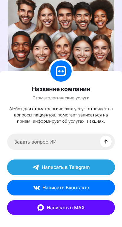 В итоге стоматологические услуги продаются стабильнее, а нагрузка на ресепшен снижается. Бот работает в Telegram, VK, MAX и на сайте, превращая интерес пациента в подтверждённую запись.
