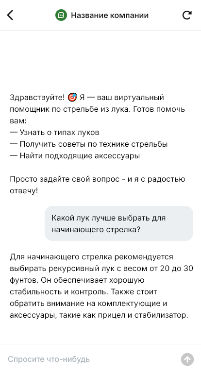 Стрельбу из лука выбирают охотнее, когда бот объясняет, что нужно новичку и записывает на первое занятие за минуту