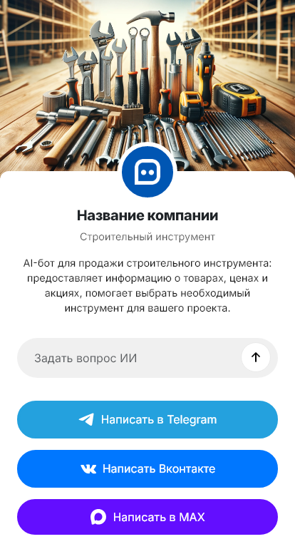 Строительный инструмент покупают и профессионалы, и частные мастера, но почти всегда под конкретную задачу и сроки. Клиенту нужно быстро понять, какой перфоратор, миксер, штроборез, уровень или плиткорез подойдет, какие расходники нужны и как не переплатить. В магазине инструмента много похожих моделей, и без нормальной консультации покупатель либо уходит, либо берет не то и возвращается с претензией. При онлайн запросах проблема усиливается, потому что в переписке сложно быстро собрать вводные.